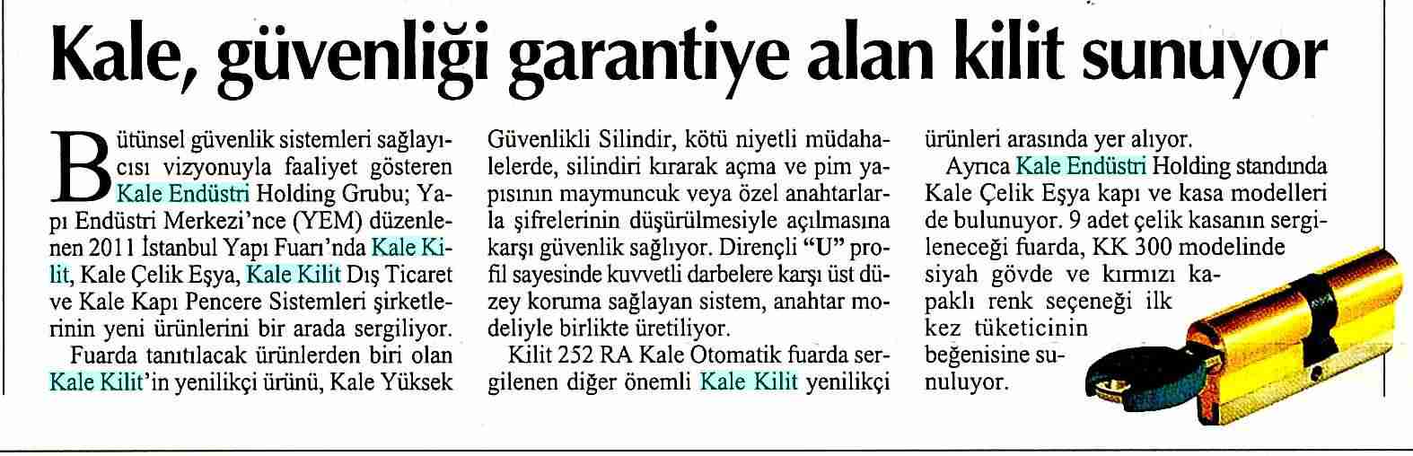 Kale, Güvenliğe Garantiye Alan Kilit Sunuyor Cumhuriyet 26.04.2011
