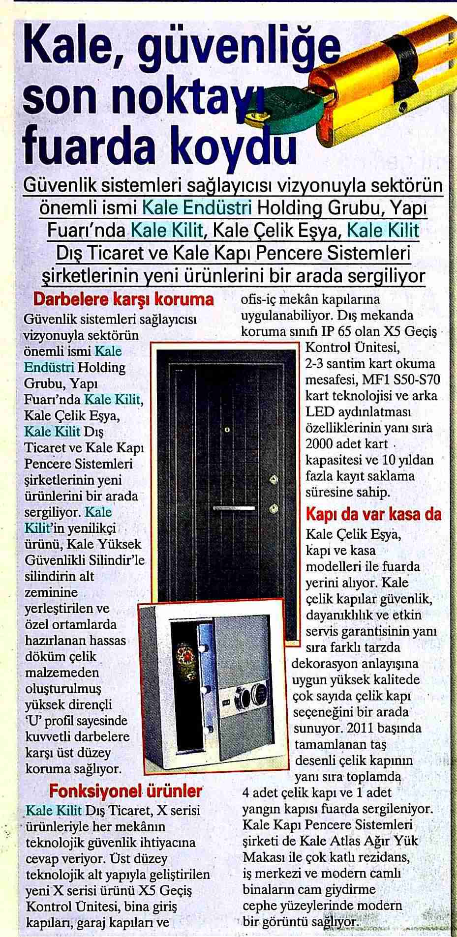 Kale, güvenliğe son noktayı fuarda koydu Posta Emlak 29.04.2011