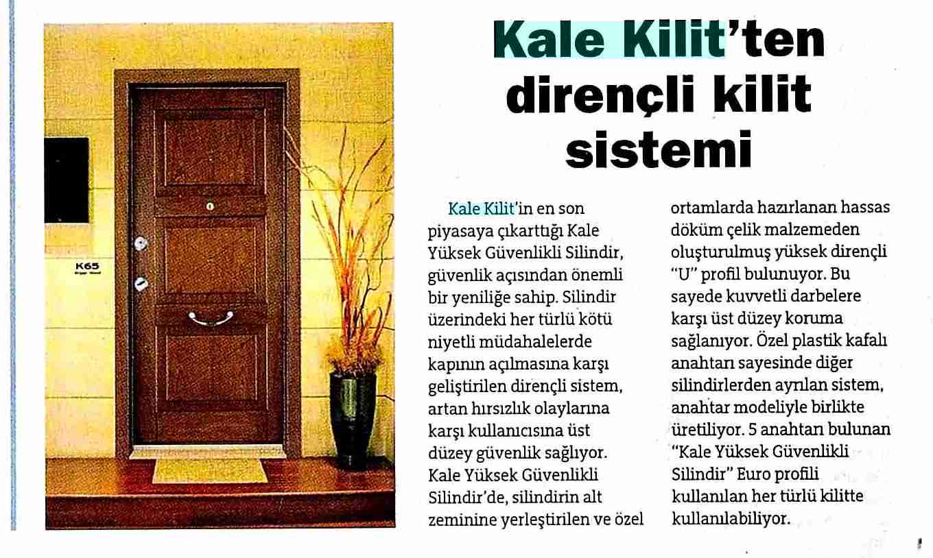 Kale Kilit'ten dirençli kilit sistemi Hürriyet Emlak Yaşam 21.07.2011