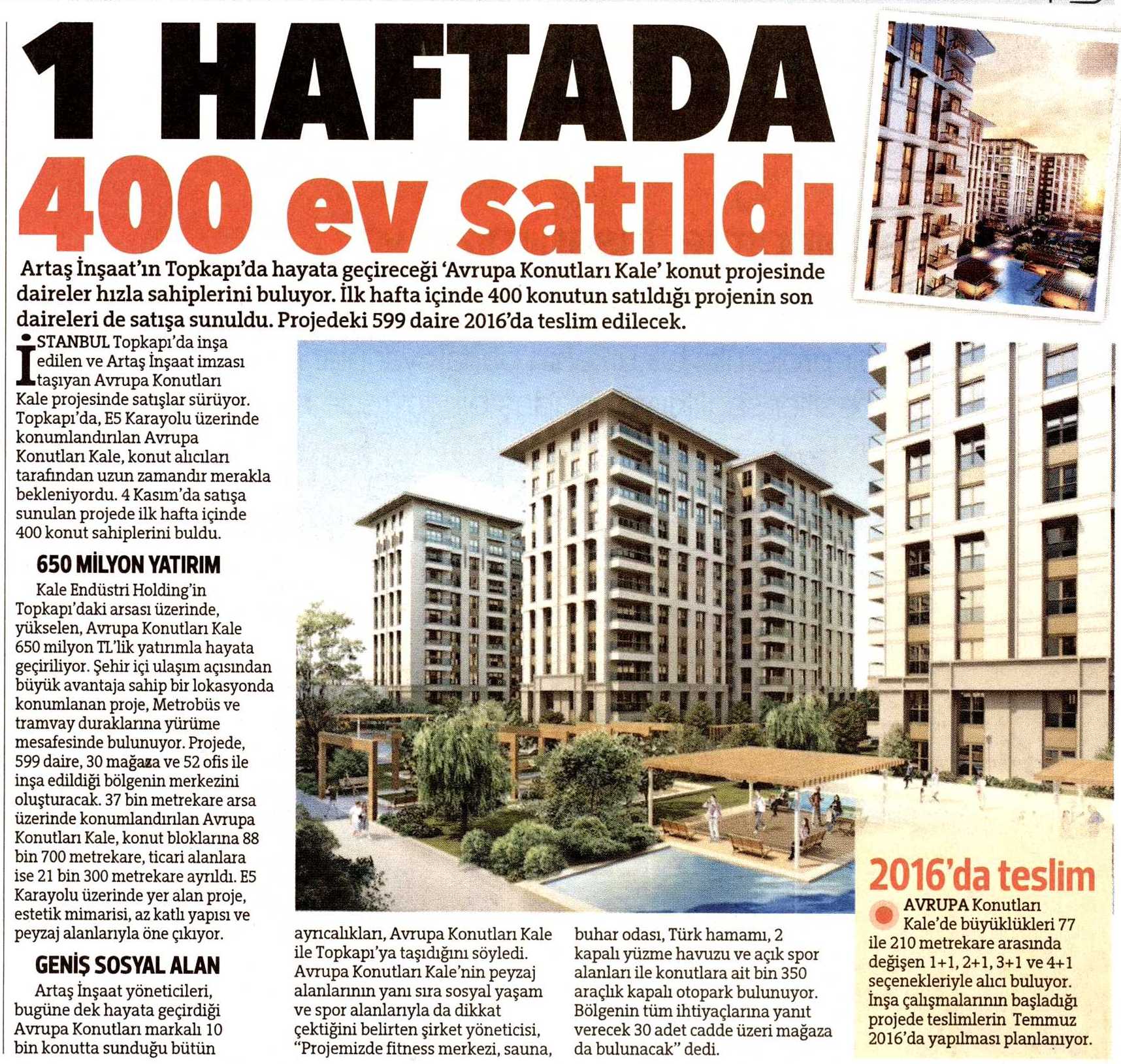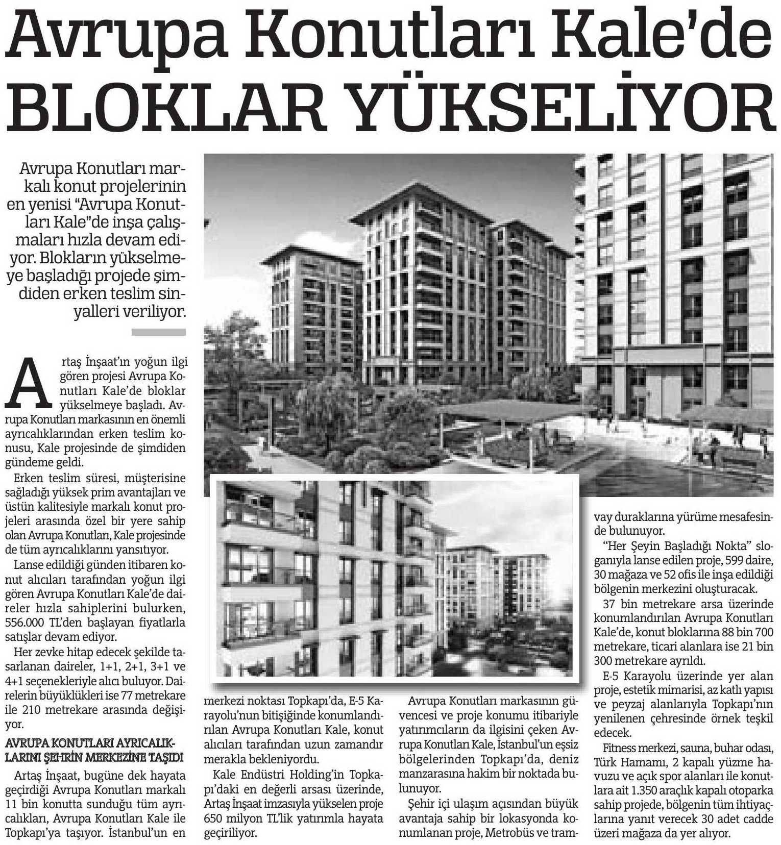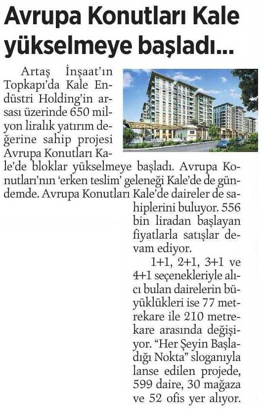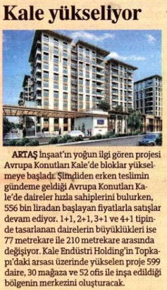 Avrupa Konutları Kale yükselmeye başladı Milliyet 09.02.2015