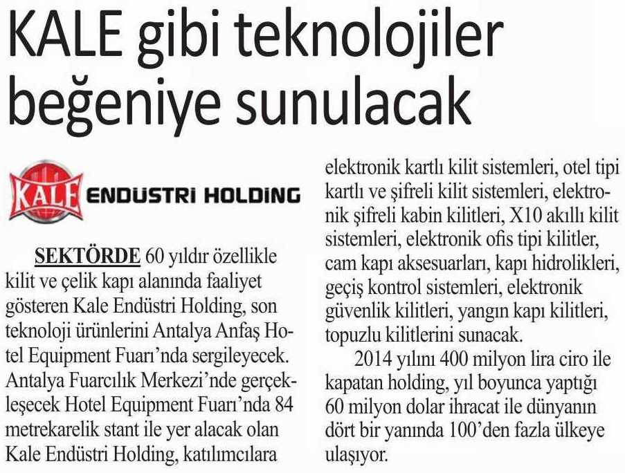 Kale gibi teknolojiler beğeniye sunulacak Sanayi Gazetesi 03.02.2015