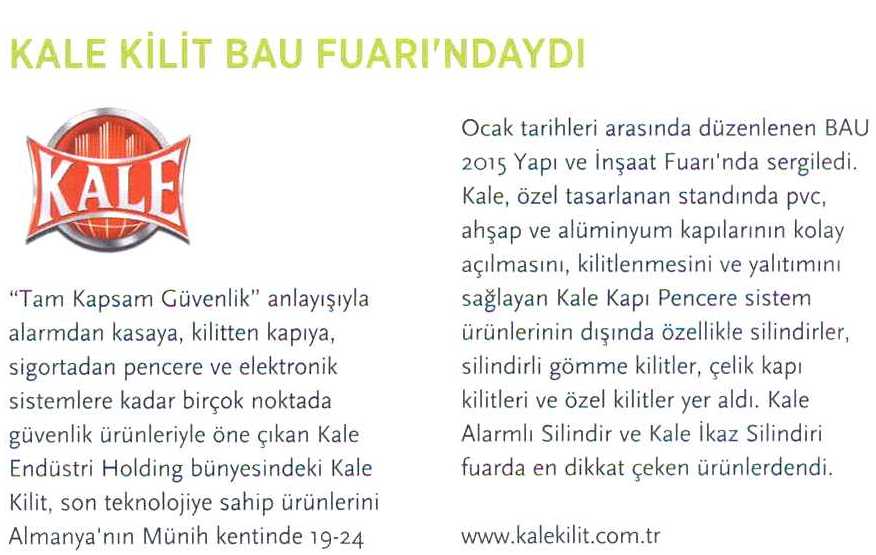 Kale Kilit BAU Fuarı'ndaydı XXI 09.02.2015