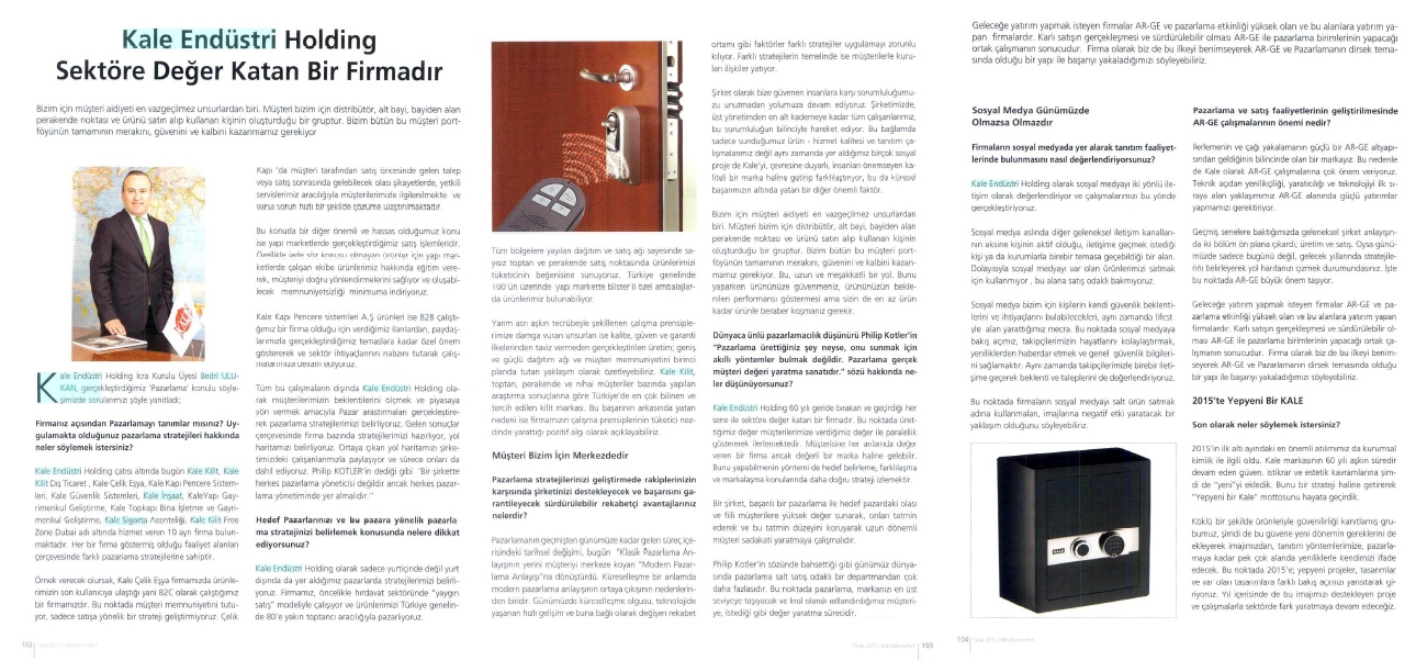 Kale Endüstri Holding Sektöre Değer Katan Bir Firmadır Windowmarket Win 01.02.2015
