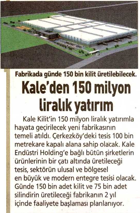 Kale'den 150 milyon liralık yatırım Posta 08.09.2014