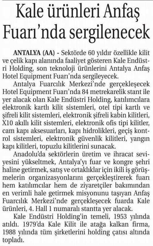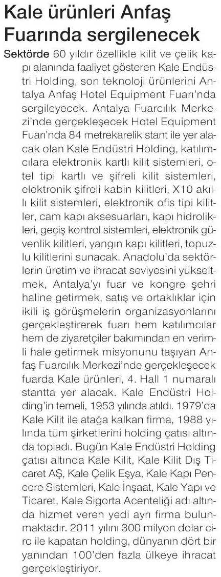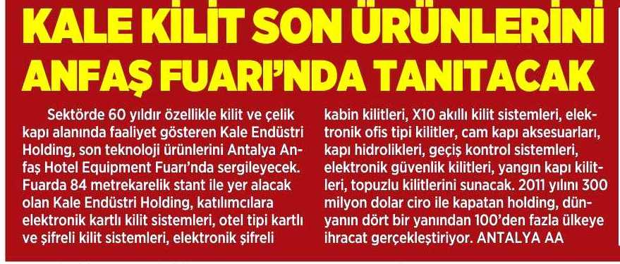 Kale Kilit Son Ürünlerini Anfaş Fuarı'nda Tanıtacak Milliyet Akdeniz 21.01.2015