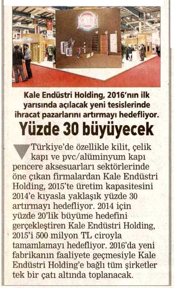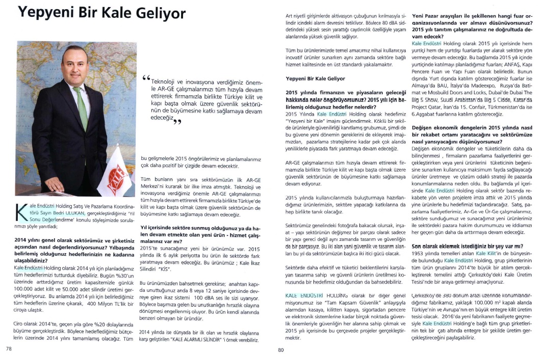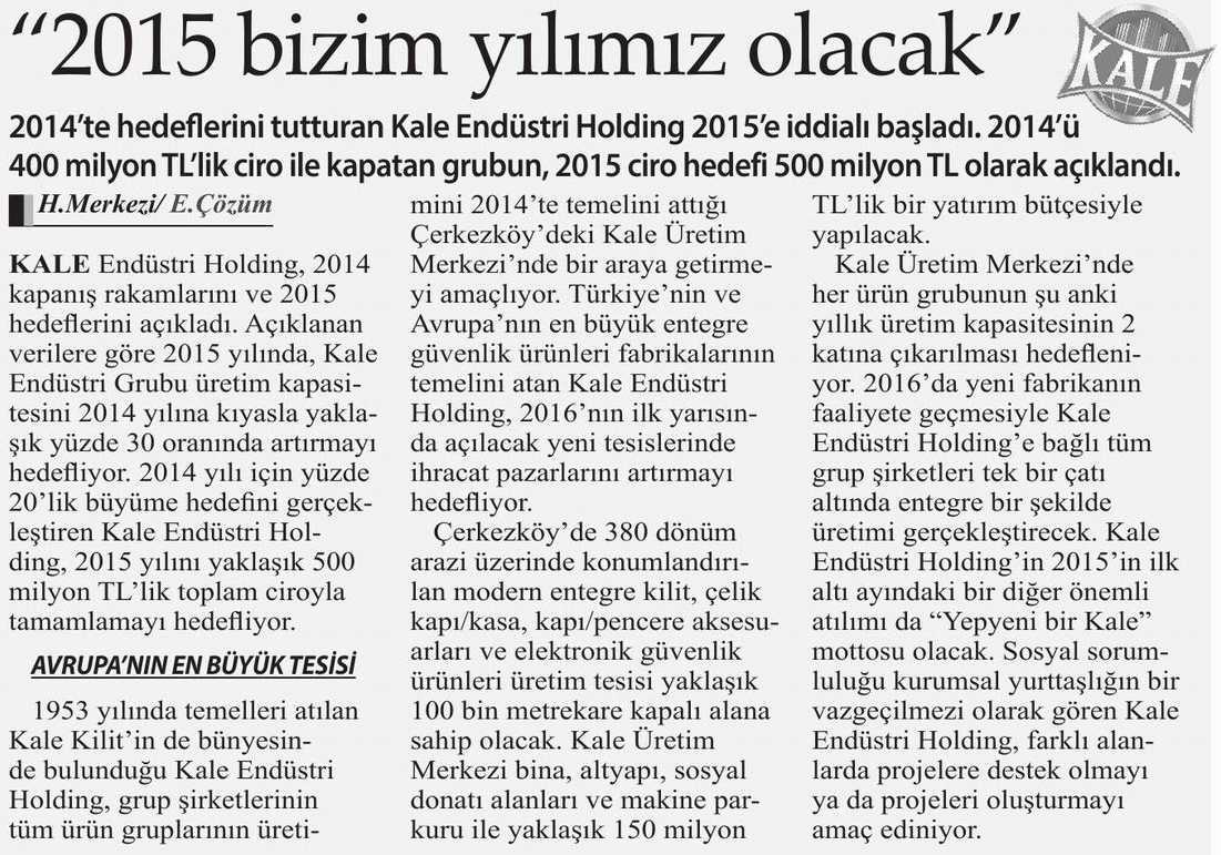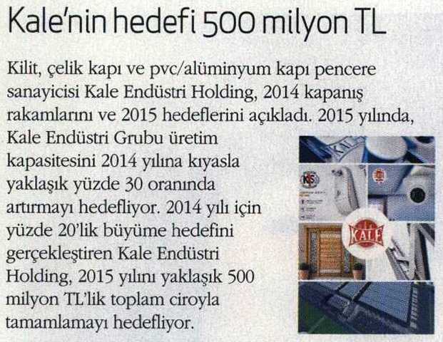 Kale'nin Hedefi 500 Milyon TL Ekonomist Dergisi 25.01.2015