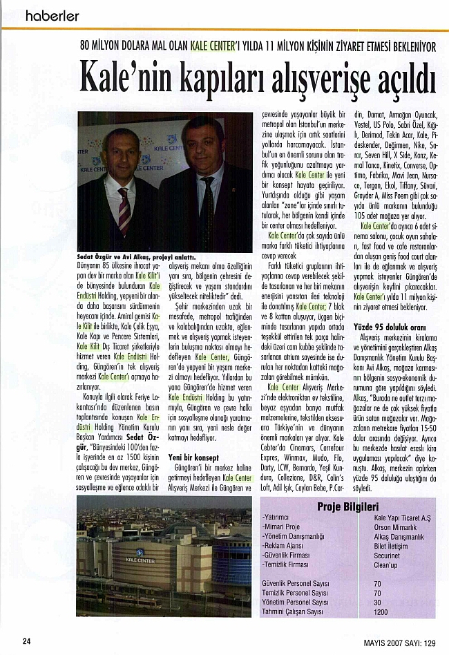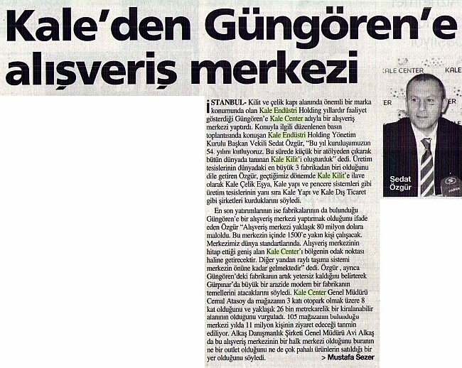 Kale'den Güngören'e Alışveriş Merkezi Türkiye Gazetesi 18.04.2007