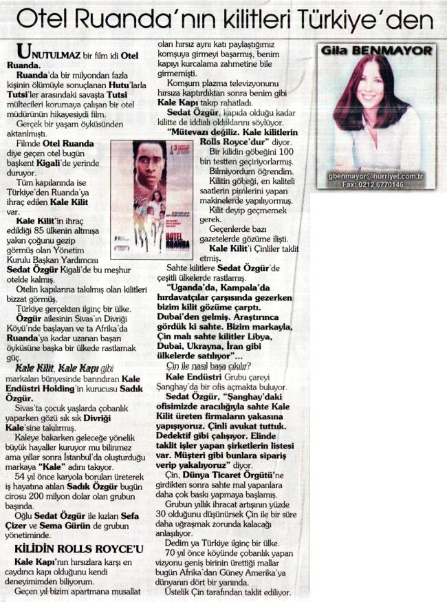 Otel Ruanda'nın Kilitleri Türkiye'den Hürriyet 20.03.2007
