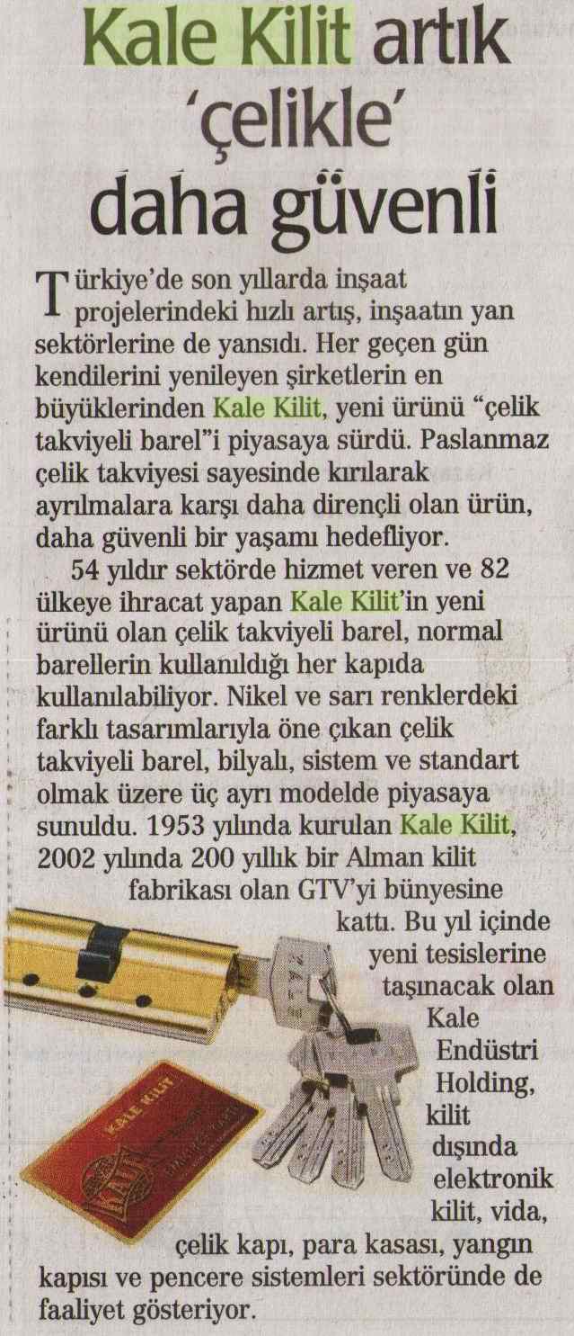 Kale Kilit Artık Çelikle Daha Güvenli Sabah Emlak 17.05.2007