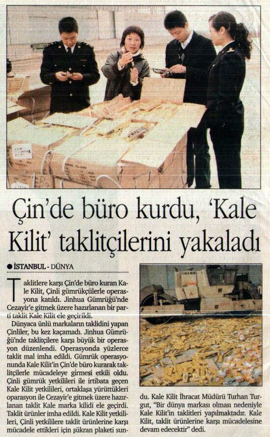 Çin'de büro kuran Kale Kilit, taklitlerini yakalattı Dünya Gazetesi 19.01.2007
