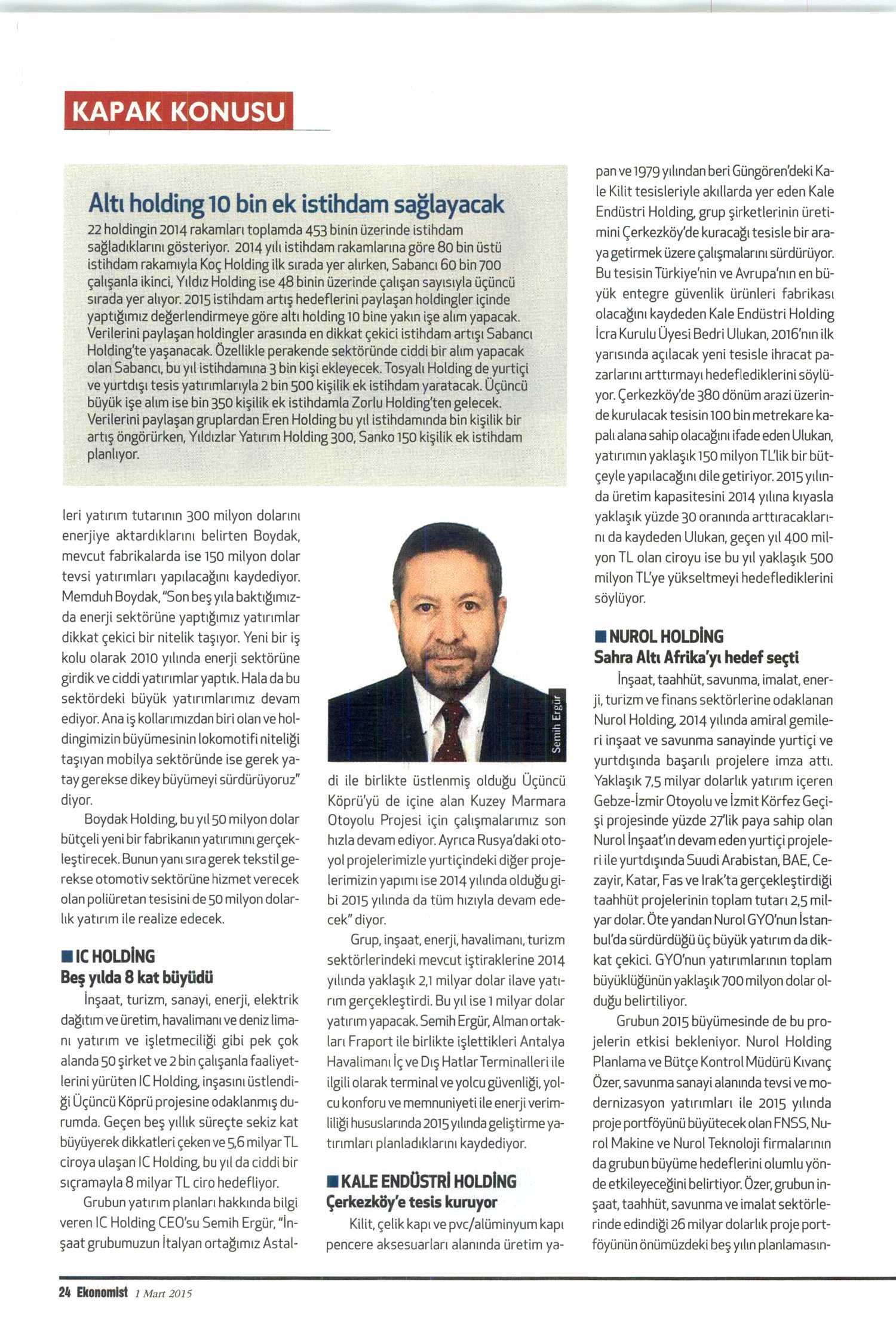6 Holding 10 Bin Ek İstihdam Ekonomist Dergisi 02.03.2015