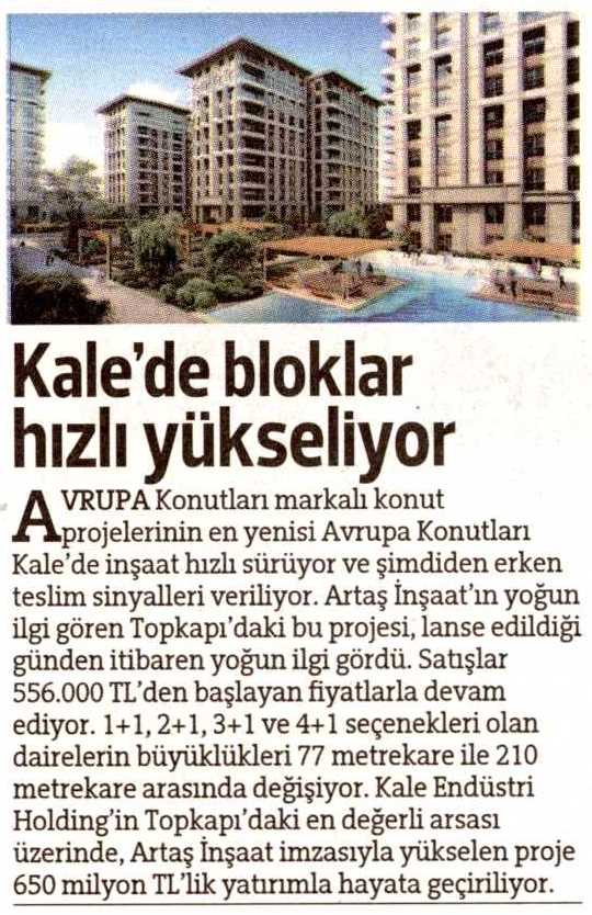 Kalede Bloklar Hızlı Yükseliyor Hürriyet 02.03.2015