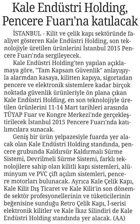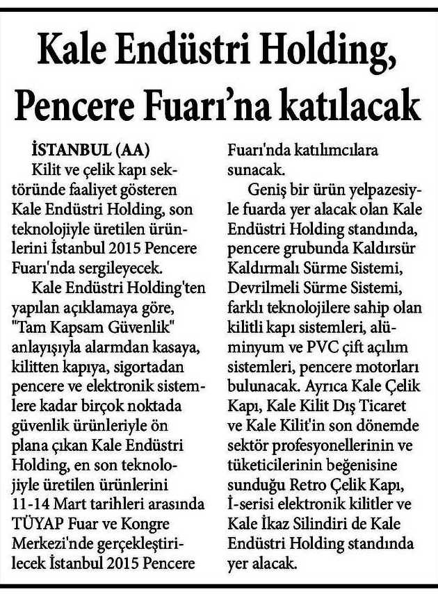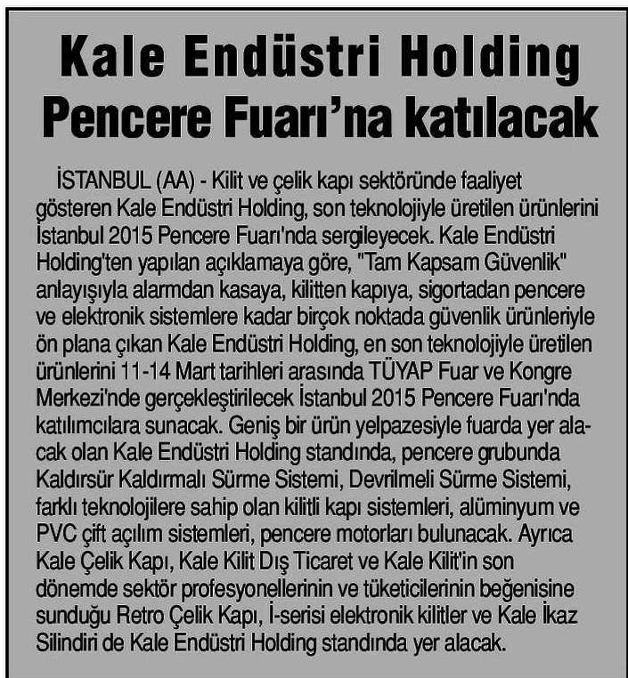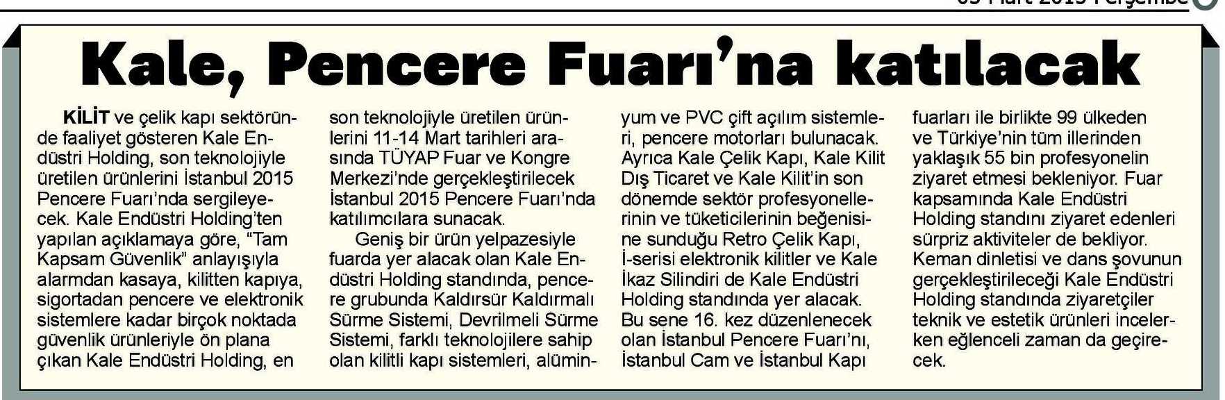 Kale Endüstri Holding Pencere Fuarı... Son An 06.03.2015