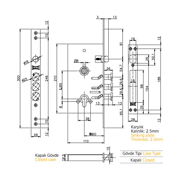 DÖNER SÜRGÜLÜ ÇELİK KAPI GÖMME KİLİDİ.RULMANLI.