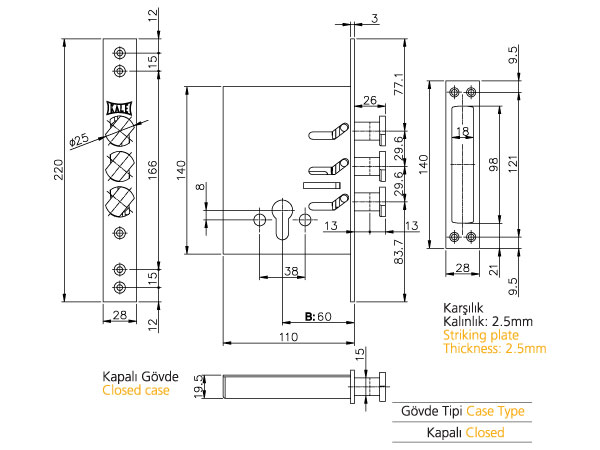 DÖNER SÜRGÜLÜ ÇELİK KAPI GÖMME EMNİYET KİLİDİ