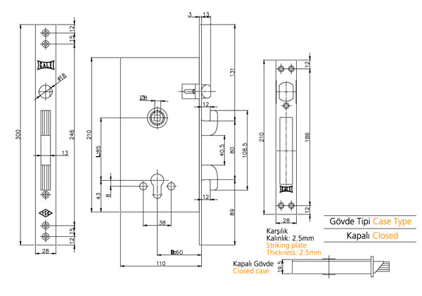 CHAMPION KANCALI ÇELİK KAPI GÖMME KİLİDİ.RULMANLI.