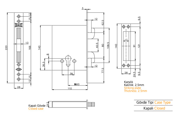 CHAMPION KANCALI ÇELİK KAPI GÖMME EMNİYET KİLİDİ