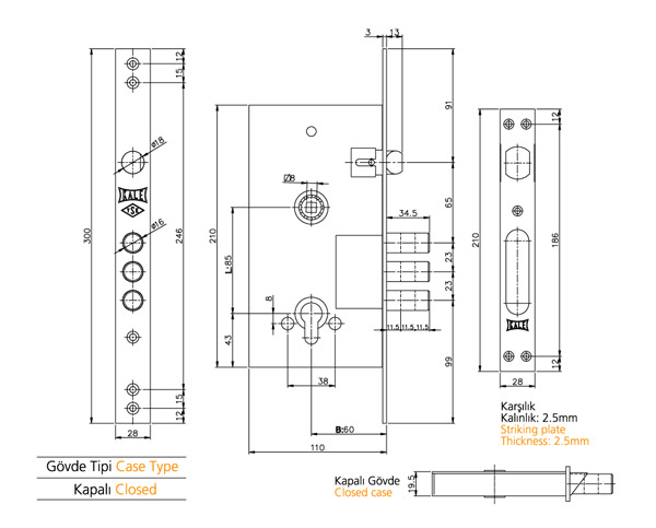 Sürgü: Çelik.Üç milli.Krom kaplamalı.Üç turlu.