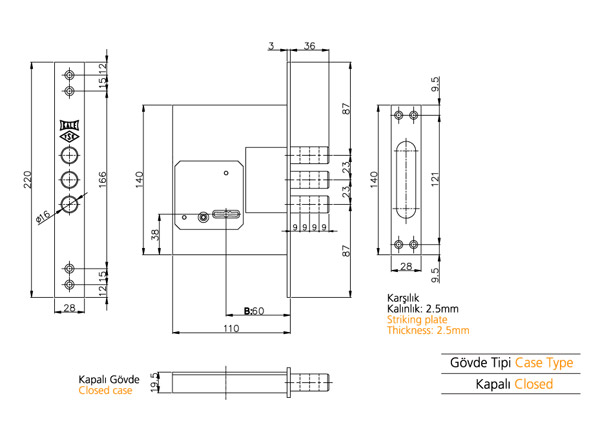 FİŞELİ ÇELİK KAPI GÖMME EMNİYET KİLİDİ