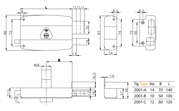 DIŞTAN TAKMA TİRAJLI KİLİT / NO:14-10-12 AHŞAP VE METAL KAPILAR İÇİN.SABİT , SİSTEM SİLİNDİRLİ , ZİNCİRLİ.