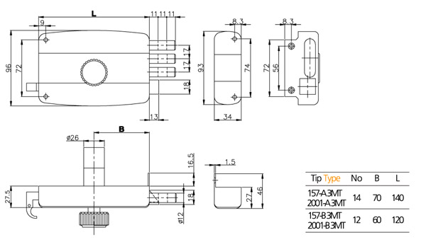 DIŞTAN TAKMA TİRAJLI KİLİT / NO: 14 - 12 AHŞAP VE METAL KAPILAR İÇİN. SABİT VEYA KOVANLI STANDART VEYA SİSTEM SİLİNDİRLİ. TOPUZLU