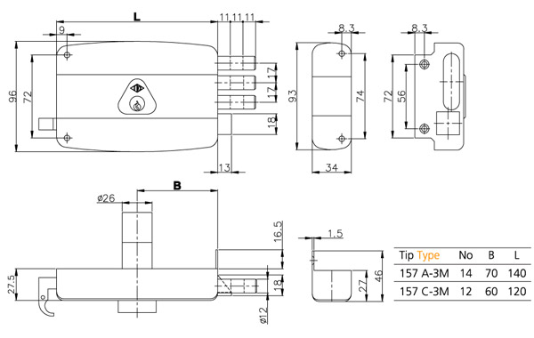 DIŞTAN TAKMA TİRAJLI KİLİT / NO: 14-12 AHŞAP VE METAL KAPILAR İÇİN.SABİT VEYA KOVANLI STANDART SİLİNDİRLİ.
