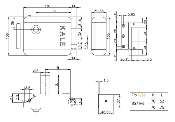 KALE OTOMAT/DIŞTAN TAKMA ELEKTRİKLİ TİRAJLI KİLİT AHŞAP VE METAL KAPILAR İÇİN.BUTONLU.MAKARALI.