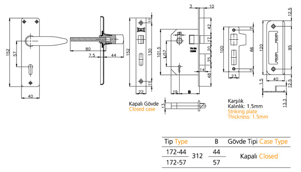 İÇ KAPI GÖMME KİLİDİ (KAPI KOLU TAKIMLI) AHŞAP KAPILAR İÇİN.