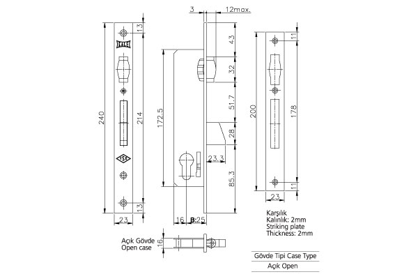 SİLİNDİRLİ GÖMME KİLİT (DAR TİP) DÜŞME SÜRGÜLÜ. ALÜMİNYUM ÇARPMA KAPILAR İÇİN.