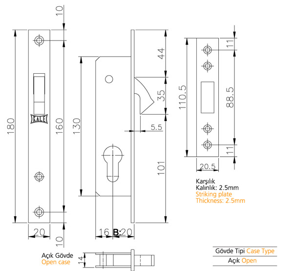 SİLİNDİRLİ GÖMME KİLİT (DAR TİP) ALÜMİNYUM SÜRME KAPILAR İÇİN.