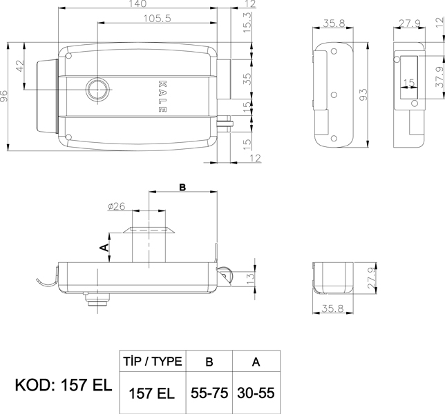 STANDART SİLİNDİRLİ ELEKTRİKLİ TİRAJLI KİLİT. AHŞAP VE METAL KAPILAR İÇİN. BUTONLU. MAKARALI.