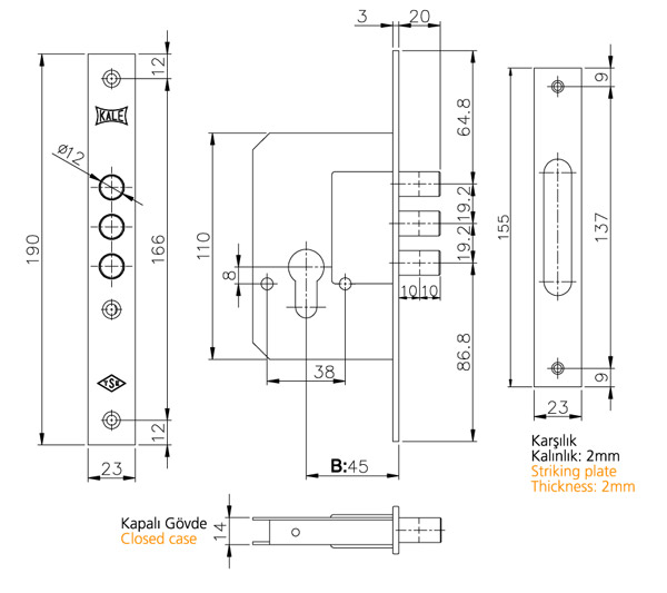 Sürgü: Çelik 3 Milli Nikel kaplamalı.İki turlu. TS EN 12209