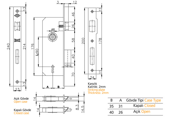 İÇ KAPI GÖMME KİLİDİ AHŞAP KAPILAR İÇİN.RULMANLI.