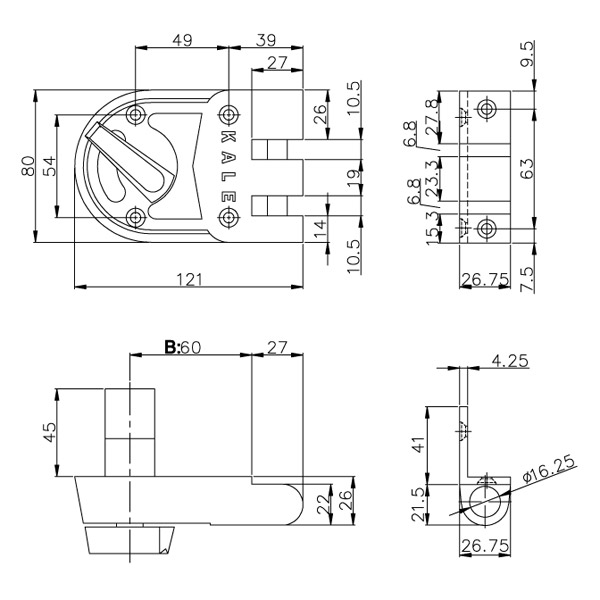 Gövde ve Karşılık: Zamak döküm.Elektrostatik gri boyalı.