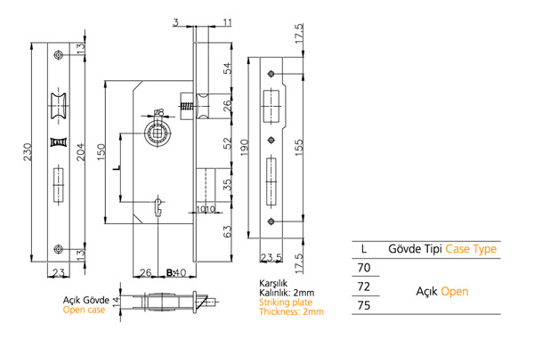 İÇ KAPI GÖMME KİLİDİ (GENİŞ TİP) AHŞAP KAPILAR İÇİN.RULMANLI.