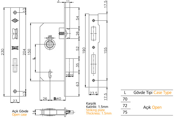 Ayna Karşılık: Çelik. Pirinç kaplamalı.(Opsiyonel: Oval.Nikel kaplamalı).