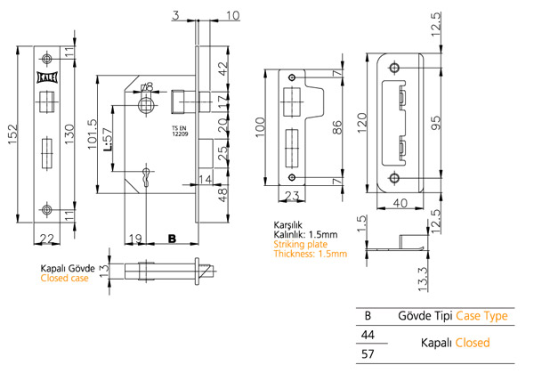 İÇ KAPI GÖMME KİLİDİ (STANDART TİP KARŞILIK VEYA AYARLI TİP KARŞILIK) AHŞAP KAPILAR İÇİN.