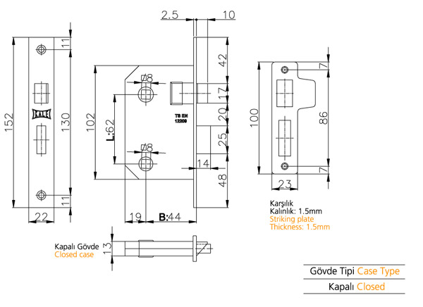 Mandal:Zamak döküm.Pirinç kaplamalı.TS EN 12209