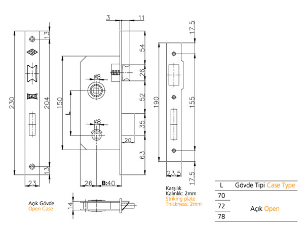 Ayna Karşılık: Çelik. Pirinç kaplamalı.(Opsiyonel: Oval.Nikel kaplamalı).