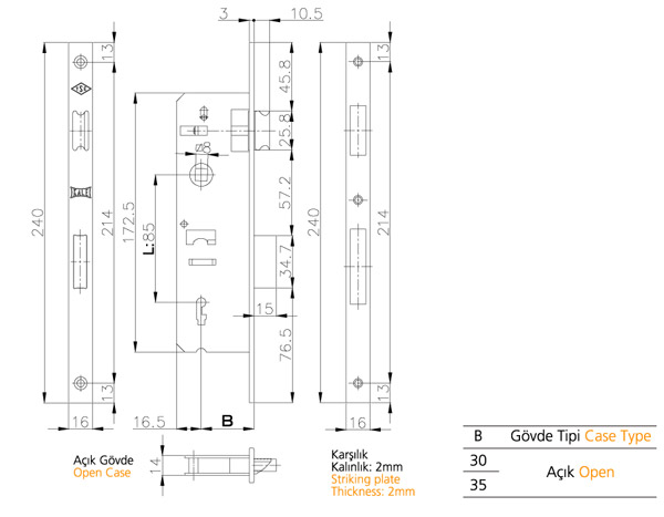 İÇ KAPI GÖMME KİLİDİ (DAR TİP) PVC KAPILAR İÇİN.
