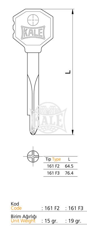 Anahtar: Çelik. Yıldız profil kesiti. Nikel kaplamalı. (Opsiyonel: 161 F2 anahtarı 101 F oto emniyet kilidine uygundur.)