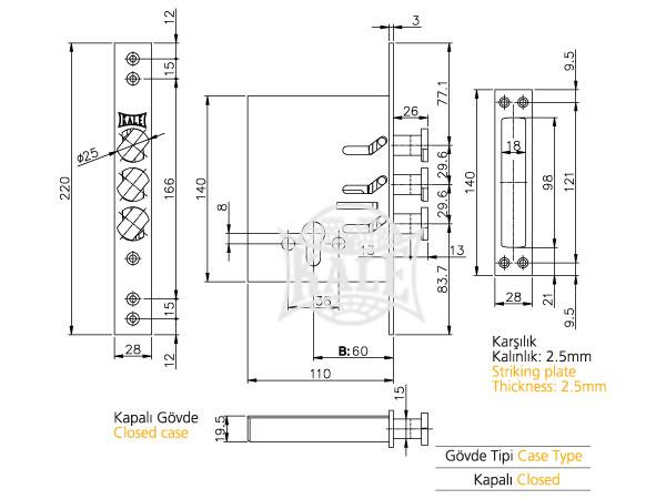 DÖNER SÜRGÜLÜ ÇELİK KAPI GÖMME EMNİYET KİLİDİ