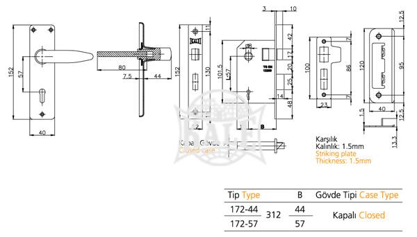 İÇ KAPI GÖMME KİLİDİ (KAPI KOLU TAKIMLI) AHŞAP KAPILAR İÇİN.