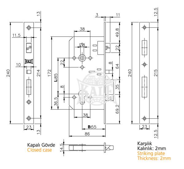 OTOMATİK KİLİTLEMELİ SİLİNDİRLİ GÖMME KİLİT (GENİŞ TİP) MANDAL VE SÜRGÜ OTOMATİK KİLİTLEMELİ. AHŞAP KAPILAR İÇİN.