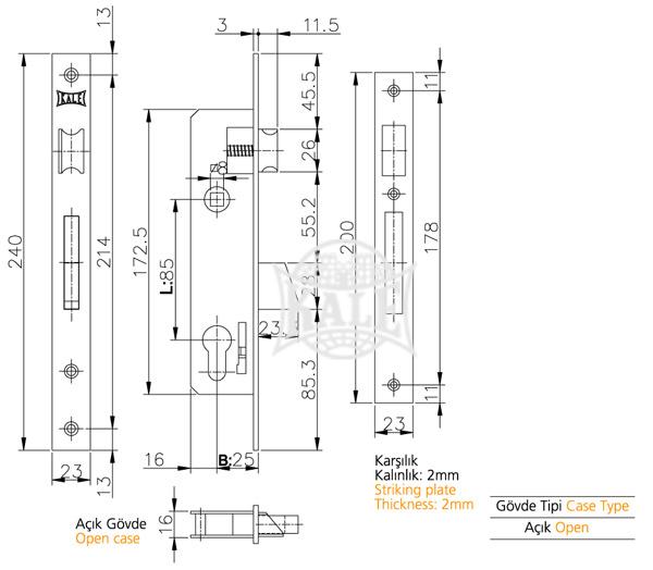 SİLİNDİRLİ GÖMME KİLİT (DAR TİP) DÜŞME SÜRGÜLÜ. ALÜMİNYUM KAPILAR İÇİN.