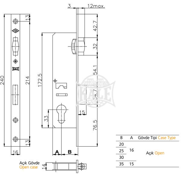 SİLİNDİRLİ GÖMME KİLİT (DAR TİP) PVC ÇARPMA KAPILAR İÇİN.