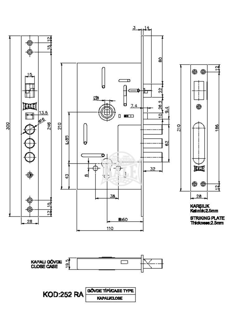 OTOMATİK KİLİTLEMELİ MONOBLOK ÇELİK KAPI KİLİDİ. RULMANLI.