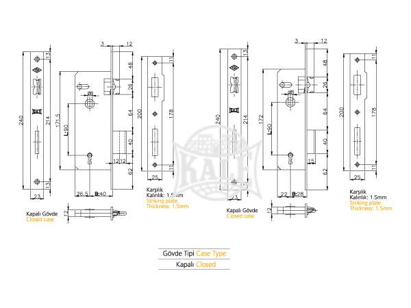 İÇ KAPI GÖMME KİLİDİ (KONVEKS TİP MANDALLI) AHŞAP KAPILAR İÇİN.