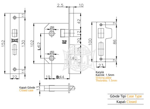 Mandal:Zamak döküm.Pirinç kaplamalı.TS EN 12209