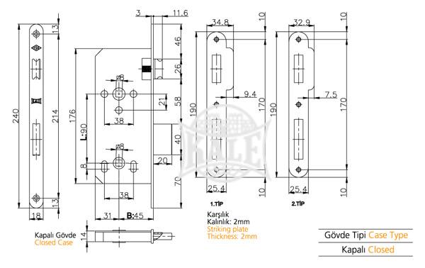 İÇ KAPI GÖMME KİLİDİ (GENİŞ TİP) AHŞAP WC KAPILAR İÇİN.ROZETLİ KOLA UYGUN KİLİT.